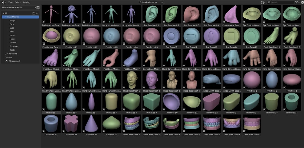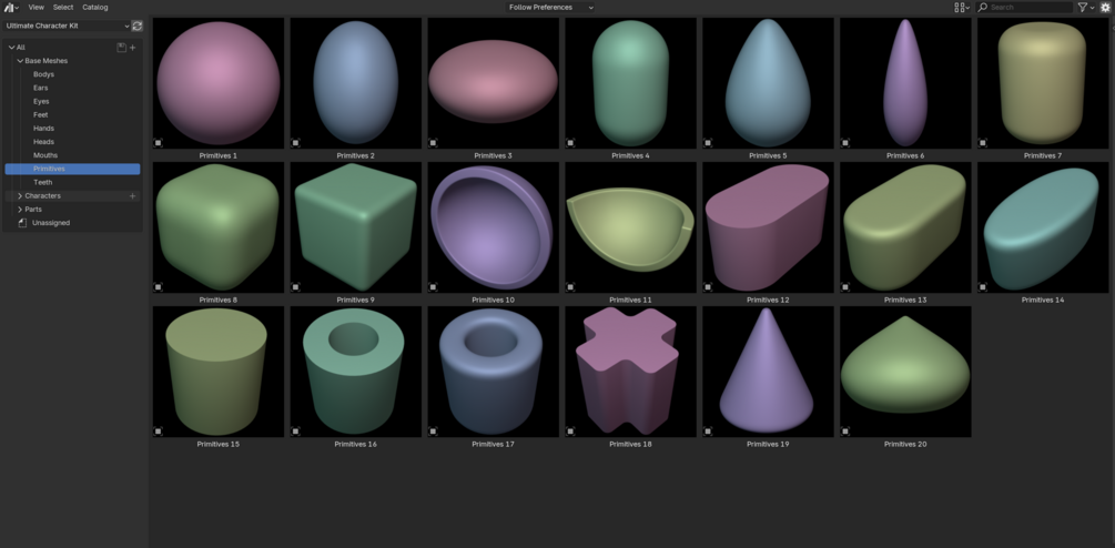 Create your own characters without starting from scratch with the Ultimate Character Kit. This kit is designed to help beginner Blender users build characters faster, learn faster, and focus on creativity.
